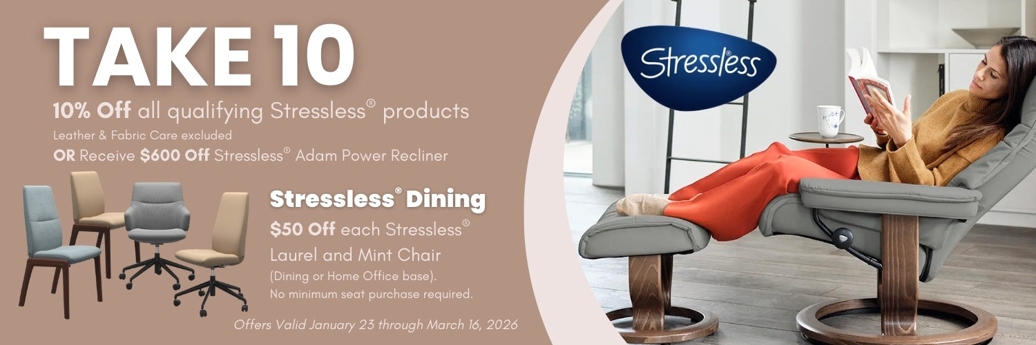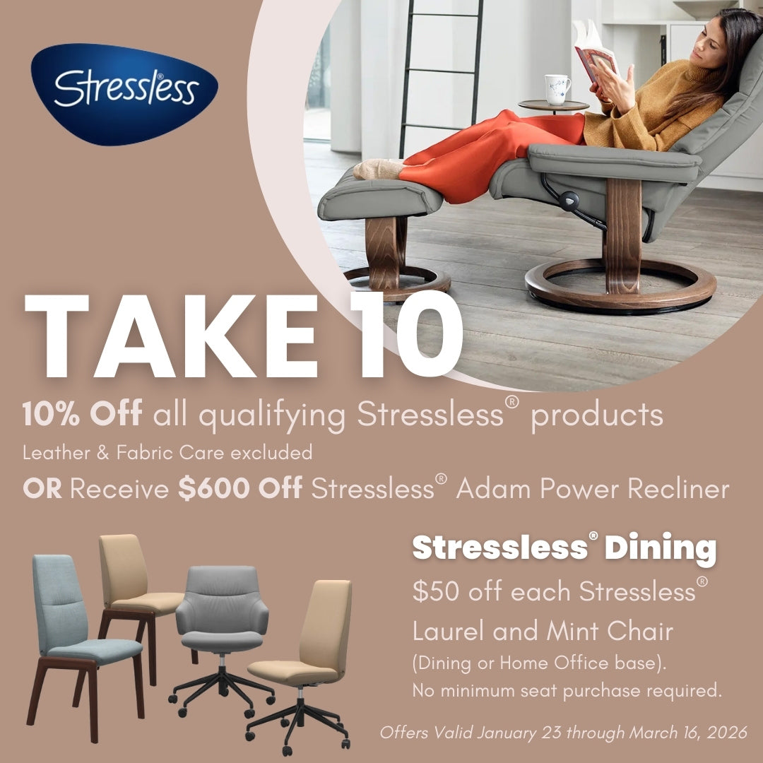 Whether you’re looking for stylish recliners, customizable sofas, or supportive chairs, our showroom showcases top brands like Flexsteel and Ekornes Stressless. As one of the region’s leading Flexsteel dealers for over 65 years, we bring you innovative designs and enduring quality. Our Ekornes Stressless Zone features a wide variety of Scandinavian-inspired seating options, renowned for their comfort and craftsmanship.