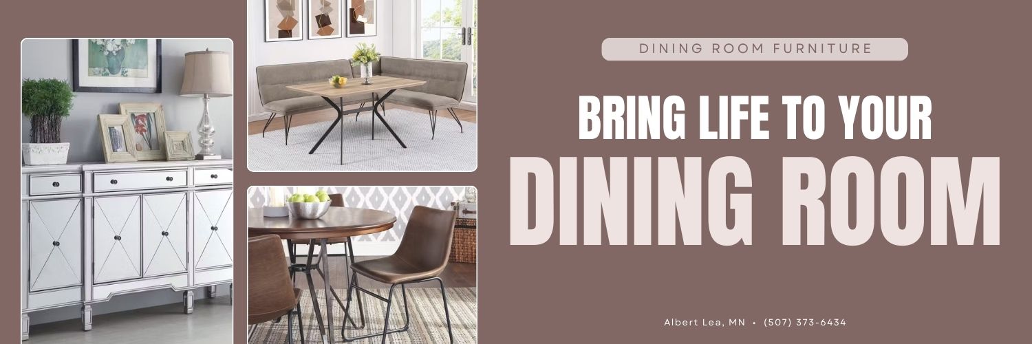 Transform your dining space with beautifully crafted furniture from Morris Furniture in Albert Lea, MN. Whether you're hosting family dinners, holiday gatherings, or casual brunches, our selection of dining tables, chairs, benches, and storage pieces brings warmth, style, and function to your home. From classic to contemporary, rustic to refined—find the perfect pieces to reflect your personal taste and elevate every mealtime moment.