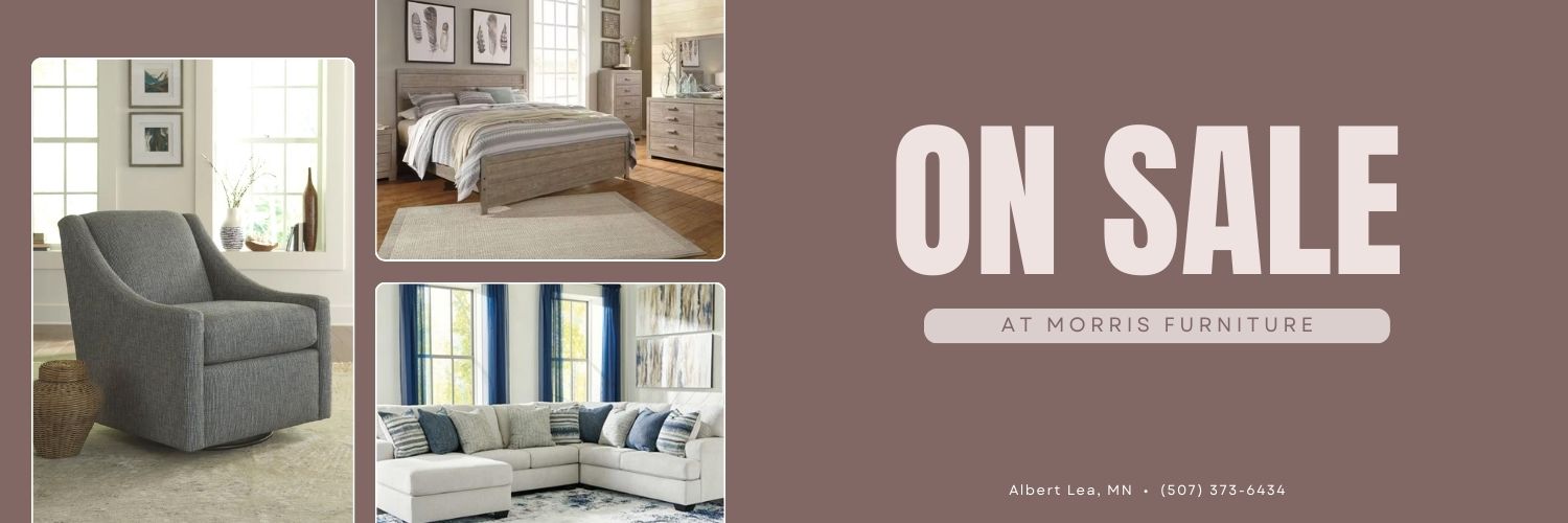 At Morris Furniture in Albert Lea, MN, our sale features incredible deals on quality furniture and mattresses from trusted brands. Whether you're refreshing a room or furnishing a new space, now is the perfect time to shop and save. Enjoy discounted prices on sofas, sectionals, recliners, dining sets, beds, and more — all with the comfort and style you expect from Morris Furniture.